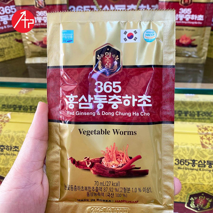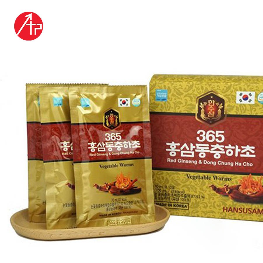 NƯỚC CHIẾT XUẤT HỒNG SÂM ĐÔNG TRÙNG HẠ THẢO 365 RED GINSENG & DONG CHUNG HA CHO Hộp 20 Gói X 70 Ml